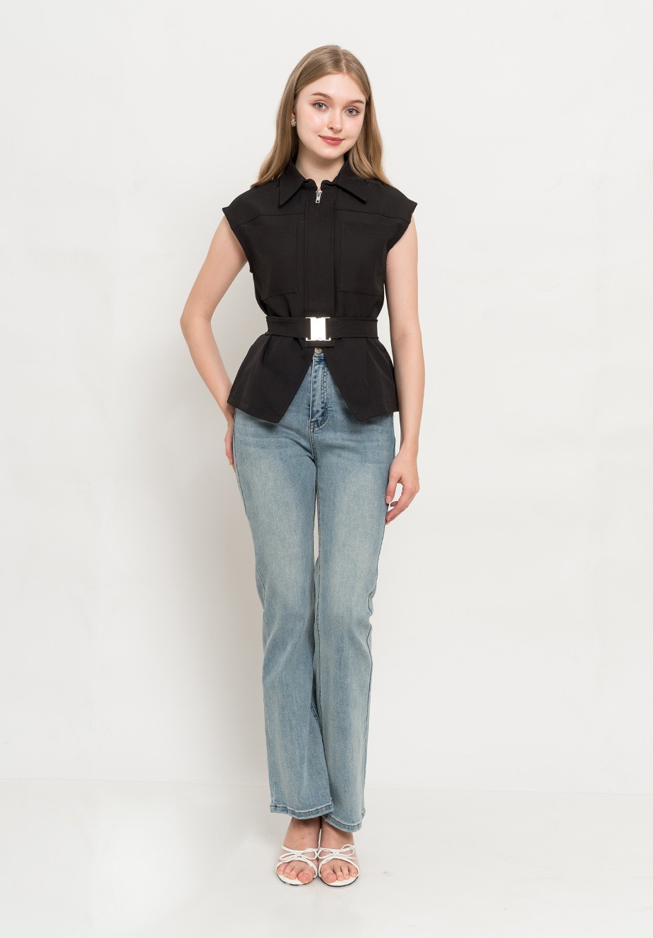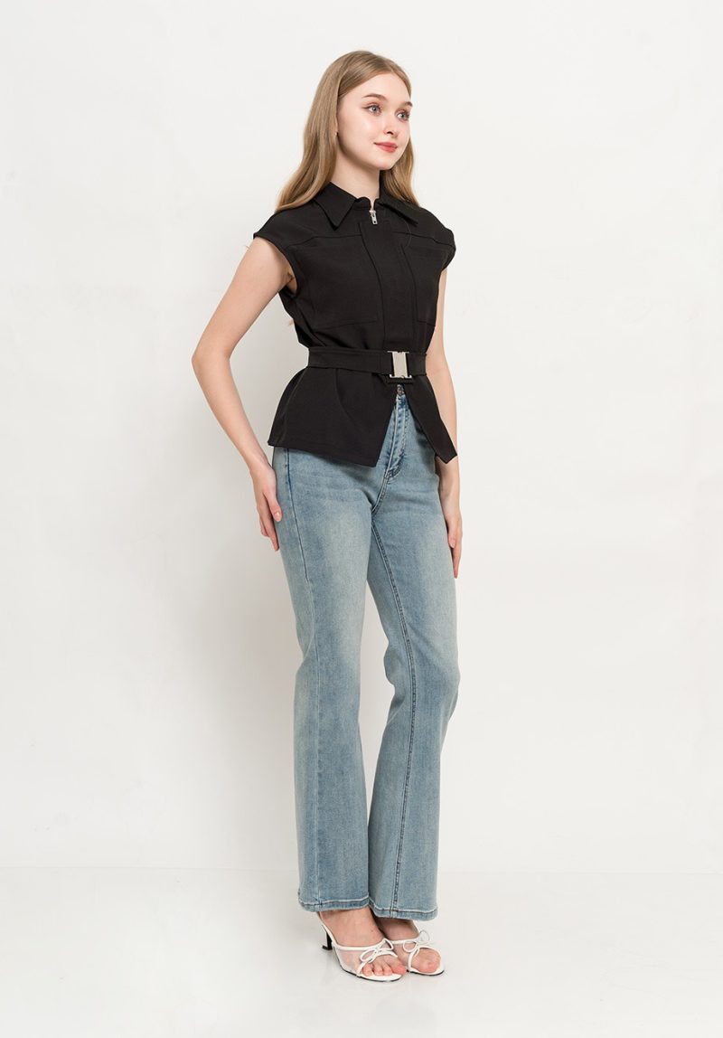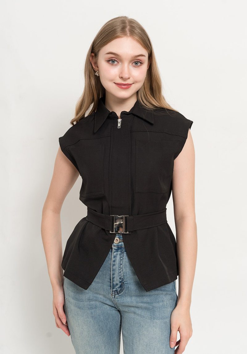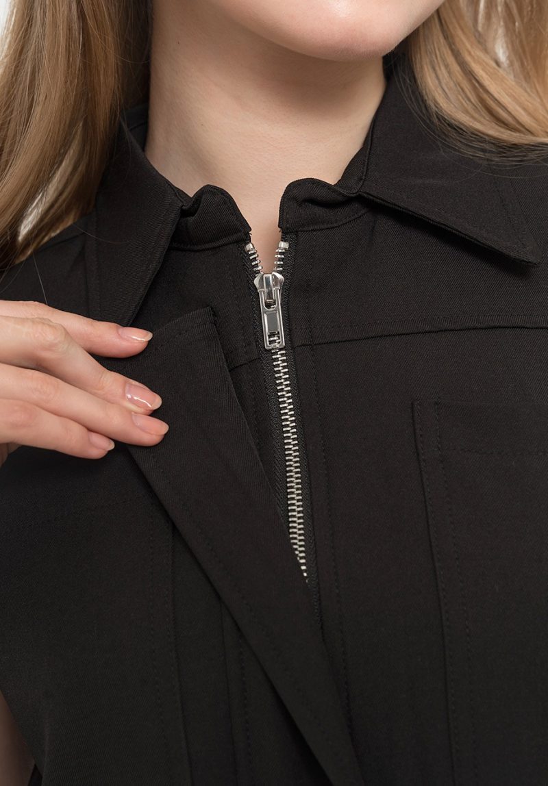 – Concealed front zipper & button for closure